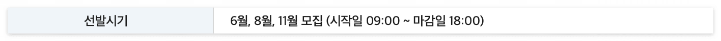 선발시기는 각 6월, 8월, 11월이며