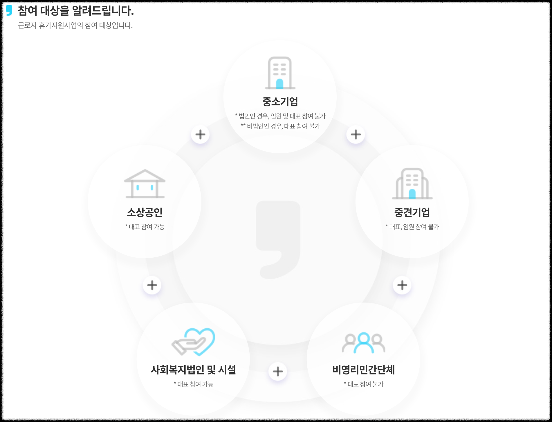 중소기업 - 법인인 경우, 임원 및 대표 참여 불가, 비법인인 경우, 대표 참여 불가