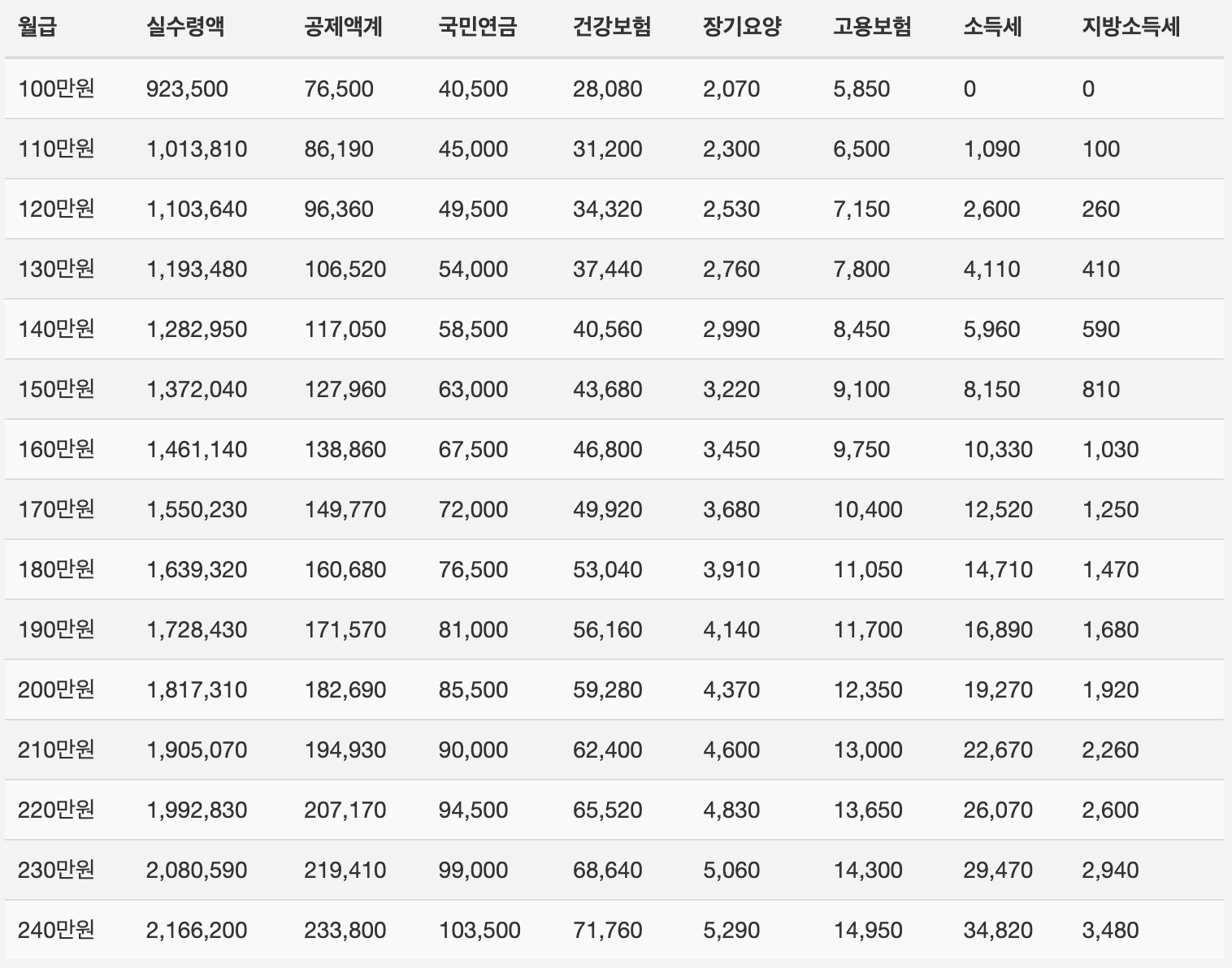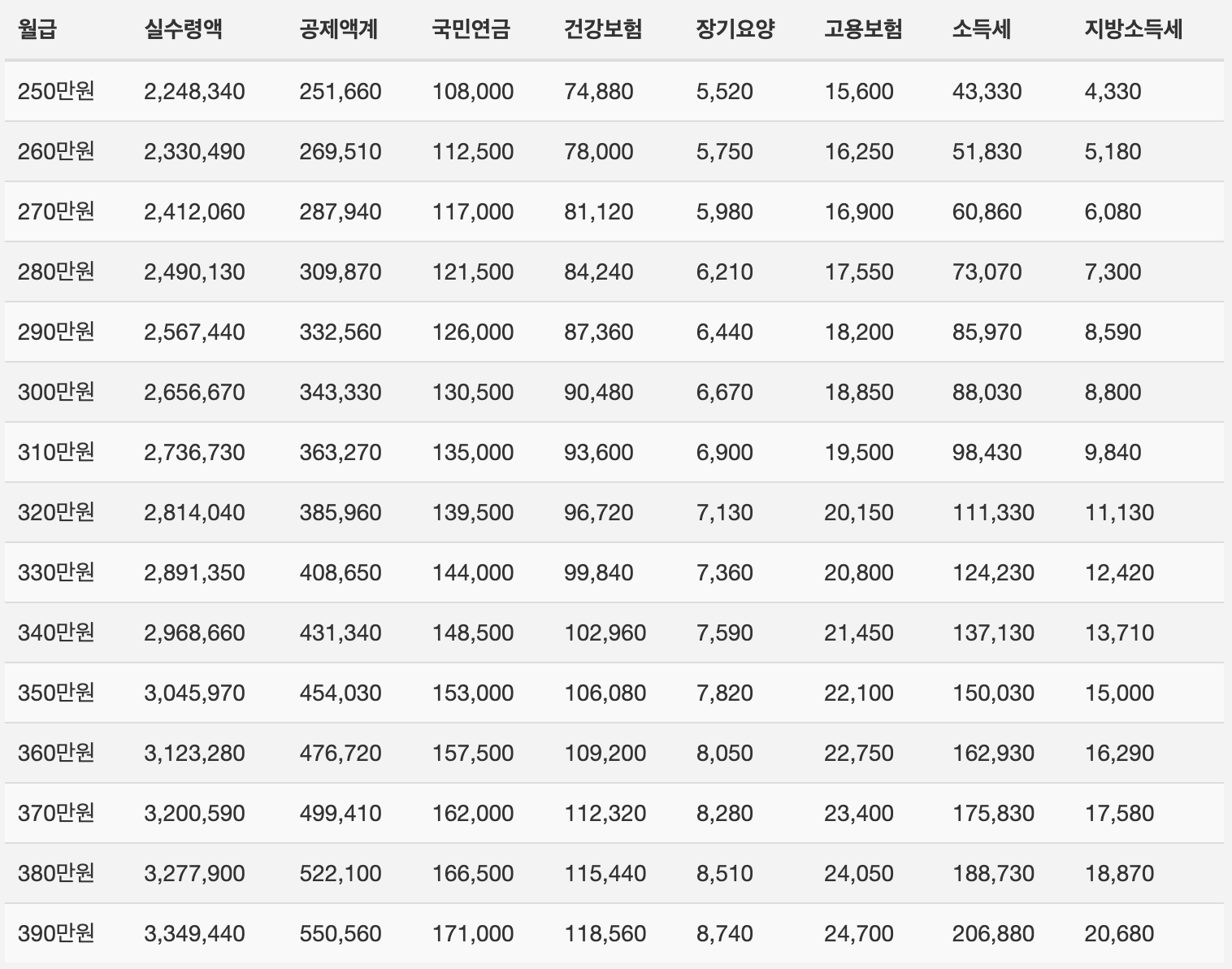 3. 2024년 연봉 실수령액 표