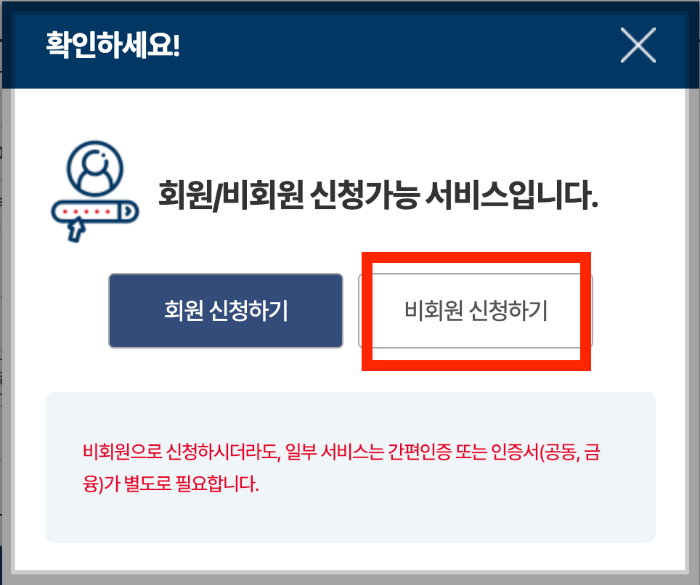 회원/비회원 모두 발급이 가능하니 비회원 눌러주세요!