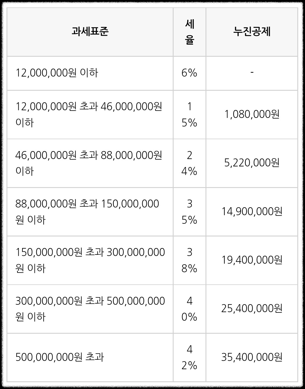 기준별로 세율을 적용하여 최종적으로 세액을 집계함을 목적으로 합니다.
