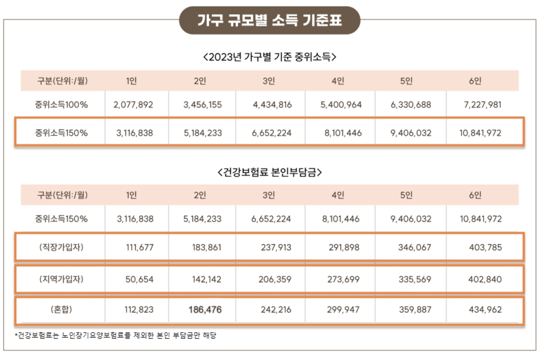 3.소득 : 중위소득 150% 이하 (또는 미취업상태이거나 주당 근로시간 30시간 이하, 사업자등록증이 없는 경우)